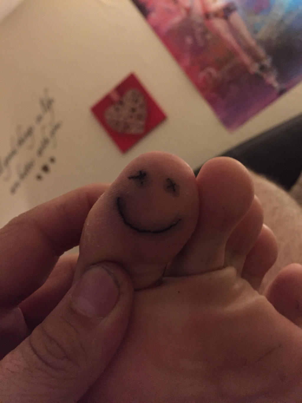 Smiley Face Tattoo On Toe. One she gave herself and the the other was a swap with co-star. Smiley face tattoo on toe.